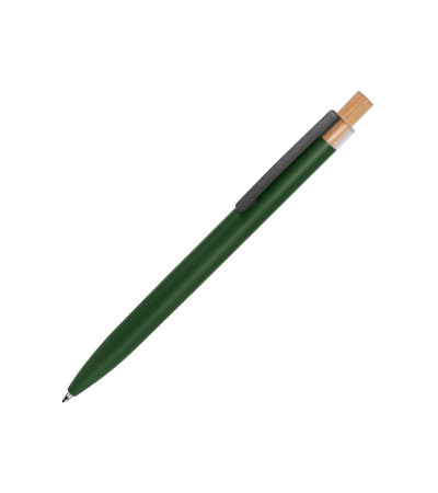 Ручка кулькова, покриття матове, бамбукова вставка, кліп з пластику. Стержень з синім чорнилом