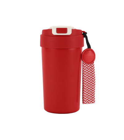 Термокружка з подвійною стінкою з нержавіючої сталі та вакуумною кришкою з кнопкою блокування.
