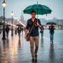 Парасолька має форму тростини. Її вигнута ручка й стрижень (основа) зроблені з натурального дерева, тому виріб досить легкий. Функція автовідкриття сприяє швидкому розгортанню купола.