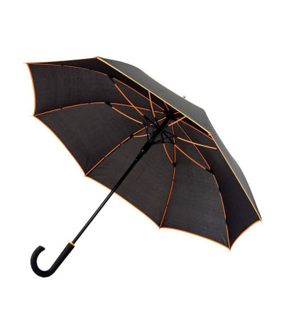 Купол парасолі декорований контрастною каймою. Разом зі спицями декор імітує кольоровий скелет парасолі, який гарно видно, коли модель відкрита. Довжина виробу – 85 см. Вага – 400 г.