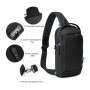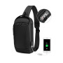 Рюкзак на одне плече.Тканина високоякісний водонепроникний 100% поліестер, застібка блискавка, має USB Port, замок TSA на основний відділ, карман органайзер та одна кишеня попереду. М’яка спинка та лямка. Розмір: 33 х 17 х 9 см.