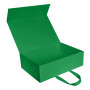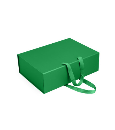 Коробка складна з твердого, переплетеного картону, з двома ручками, вкрита дизайнерським папером. Кришка на магнітах