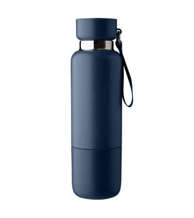 Термопляшка зі з’ємною чашкою, з подвійною стінкою з нержавіючої сталі. Має в комплекті короткий та довгий ремінець для перенесення Ідеальна для подорожей, офісу чи активного відпочинку.
